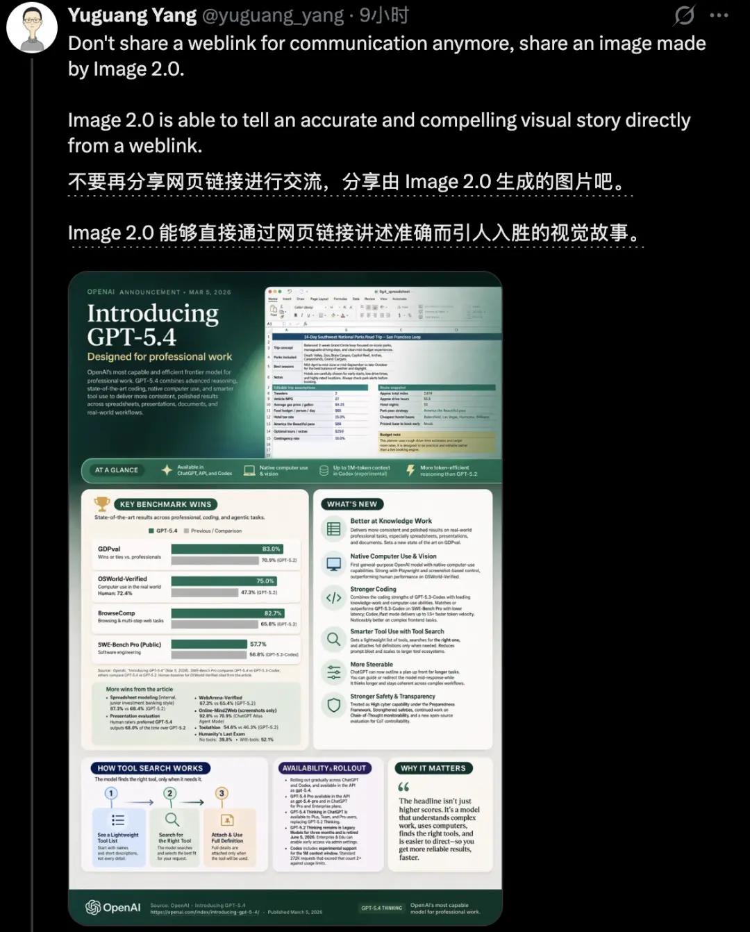 他在个人账号上介绍GPT Image 2的信息图生成能力,可以为科研人员节省大量时间。