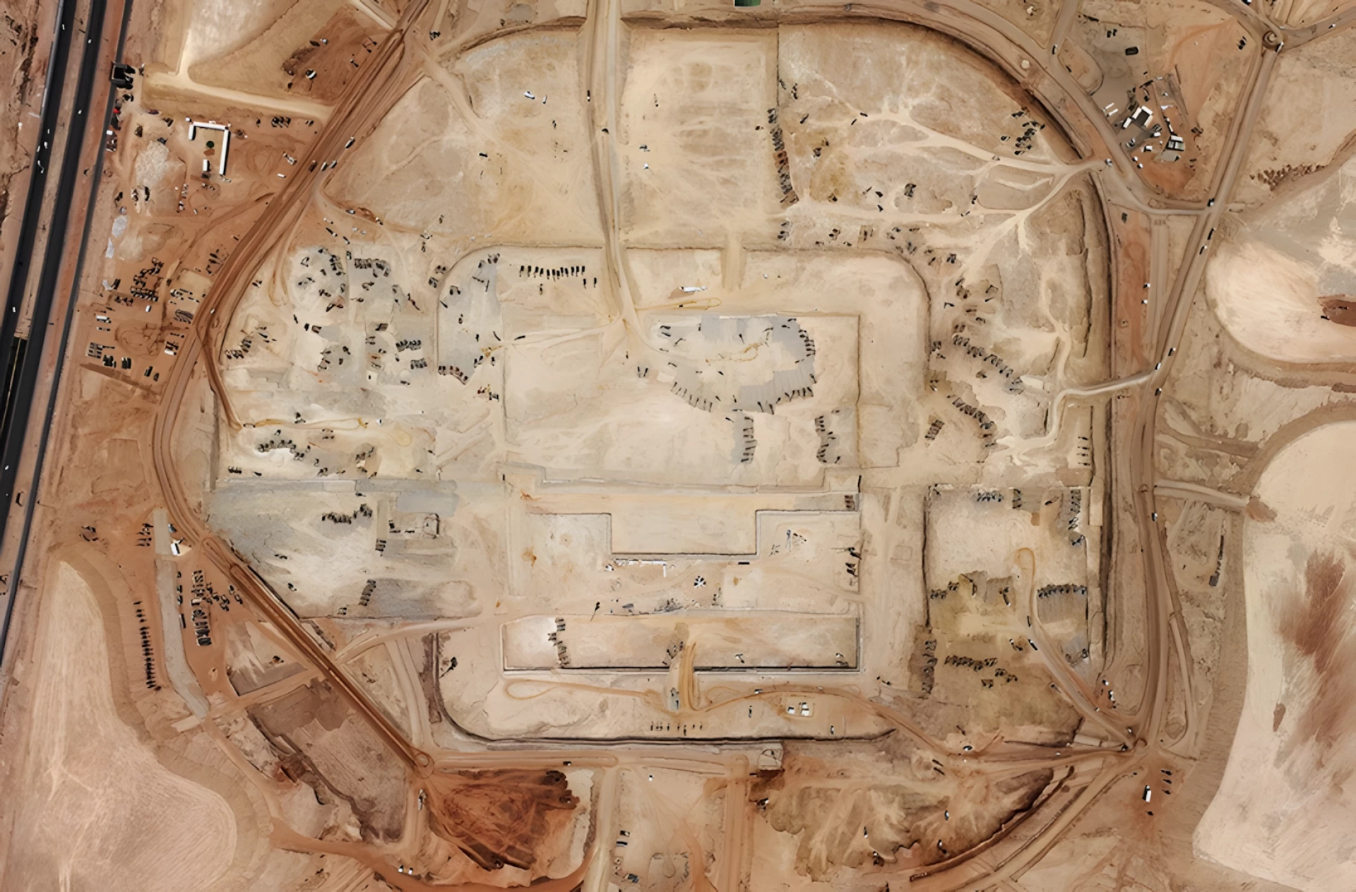 截至 2024 年底,项目场地开挖工作已接近尾声,约 1000 万立方米土方被清运,庞大的基础和地基工程已大规模展开,但如今很可能将长期处于半成品状态。 Mukaab 所在的新城区“New Murabba”原定于 2030 年完工,如今整体工期已被推迟至 2040 年。
