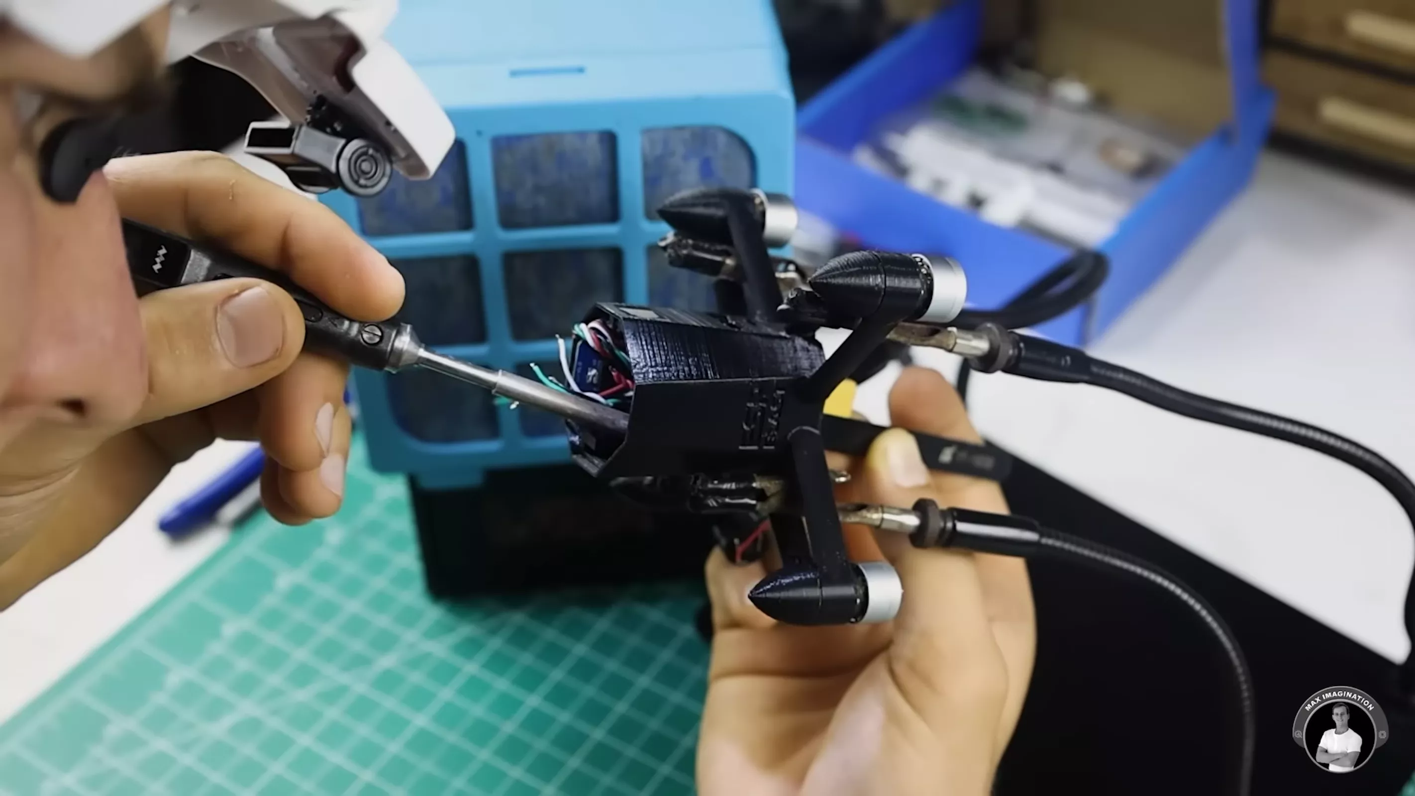ESP-Blast 的诞生并非完全从零起步。 Max 的灵感来自两支在自制高速四轴领域轮番刷新纪录的团队:一支由制作人 Benjamin Bigg 领衔,另一支则与 Luke 和 Maximo Bell 相关。 这些团队打造的极限速度机型最高已经被推到数百英里/小时,最新一架机器的速度纪录约为 411 英里/小时,为 ESP-Blast 提供了性能标杆和设计参照。 在本项目中,Max 也专门向 Bigg 进行了请教,不过 ESP-Blast 本身并未以打破绝对速度纪录为目标。
