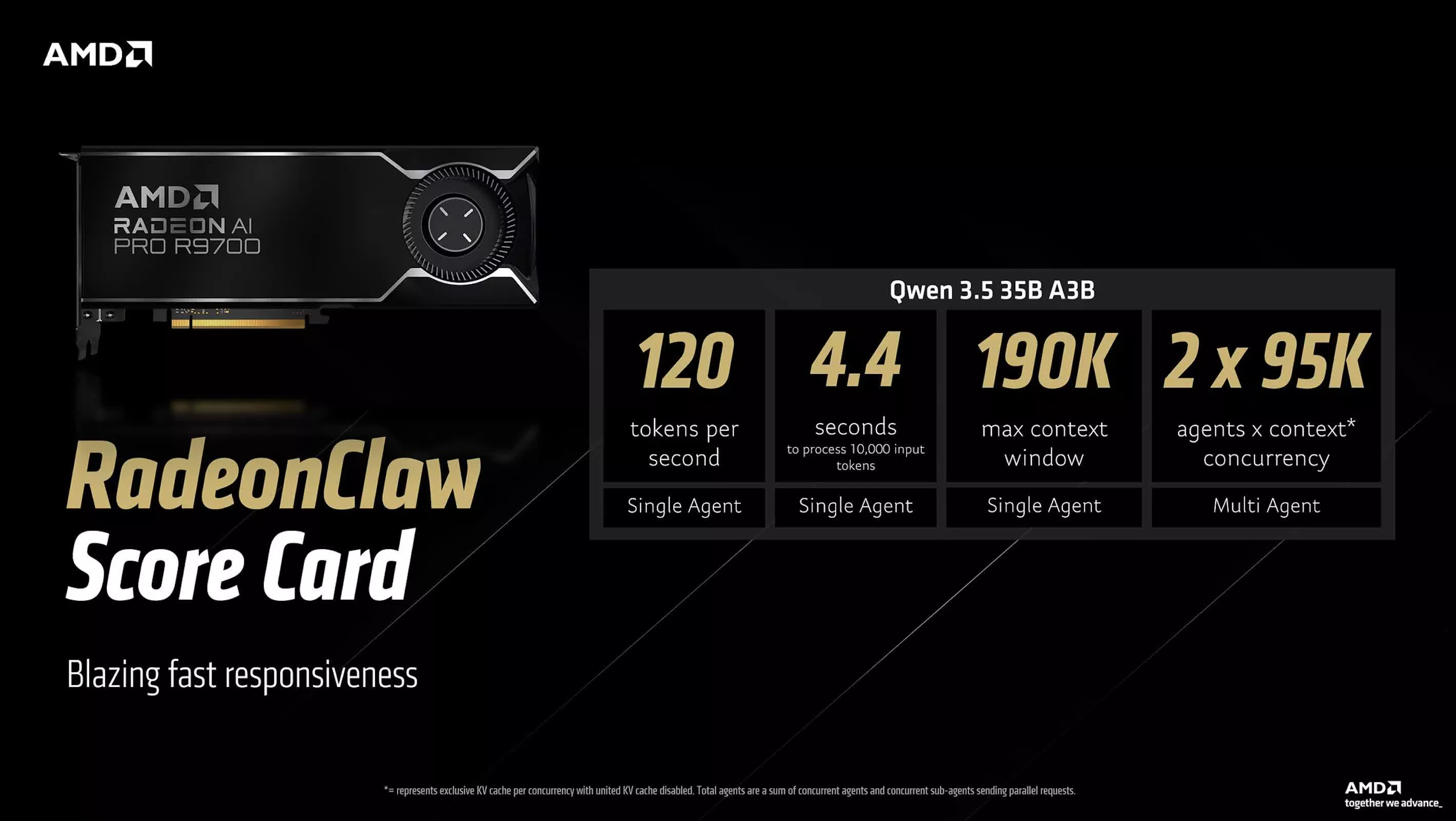 另一套 RadeonClaw 配置则将算力重心转移到独立 GPU —— Radeon AI PRO R9700。 这款工作站级显卡提供 32GB 专用显存,显著提升了推理吞吐量。 在同一模型下,其生成速度可提升至每秒约 120 个 token,将处理 1 万 token 输入的时间缩短至约 4.4 秒。 不过,这种性能增益伴随一定取舍:最大上下文窗口缩减至约 19 万 token,并发智能体数量降至 2 个。 这些差异凸显了 AMD 试图提供不同调优路径的思路——开发者可根据自身需求,在更大上下文深度和更高推理速度之间做出权衡。