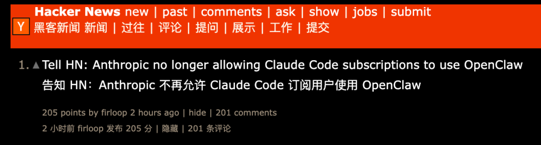 ∞ Anthropic正式封杀OpenClaw 全球开发者24小时血崩