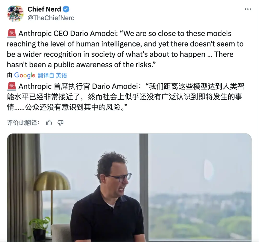 我们的模型已经非常接近人类智能水平,但社会对即将到来的风险却缺乏广泛认识。