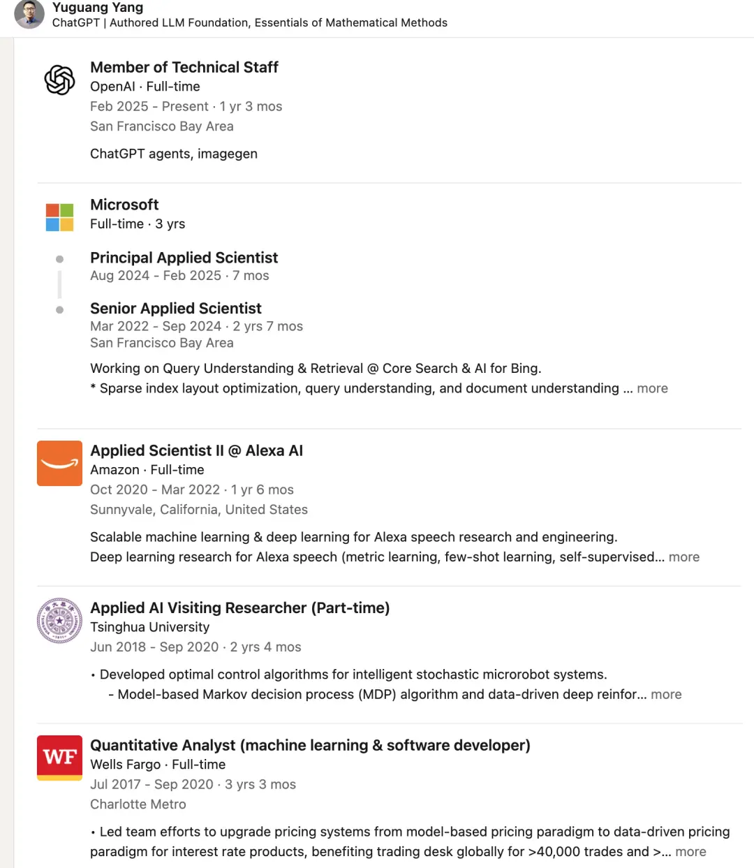 Bing Liang,在Google干了5年多,参与Imagen3、Veo、Gemini Multimodal,2025年跳到OpenAI做图像生成研究。
