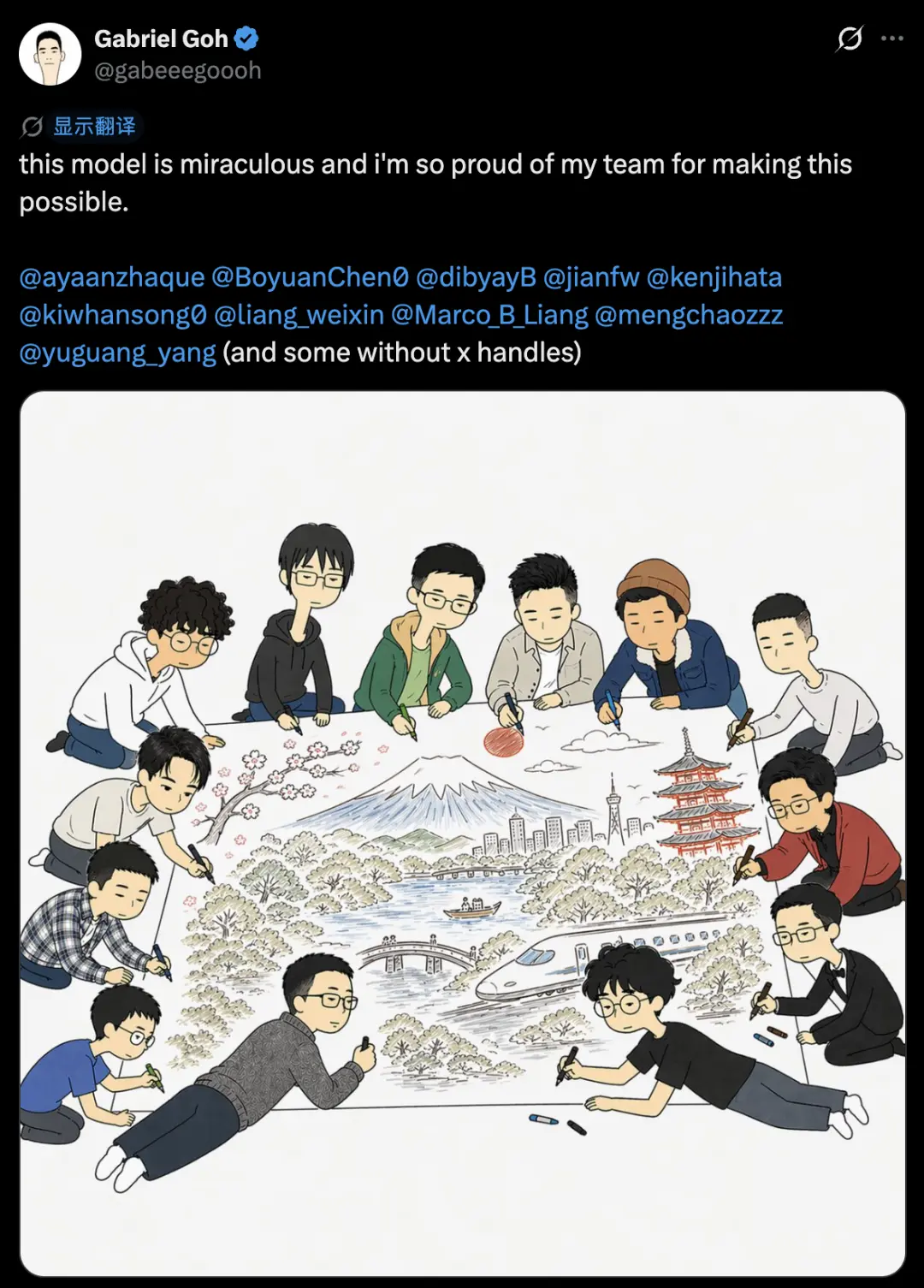 整个团队的负责人Gabriel Goh晒出了的团队成员AI全家福。