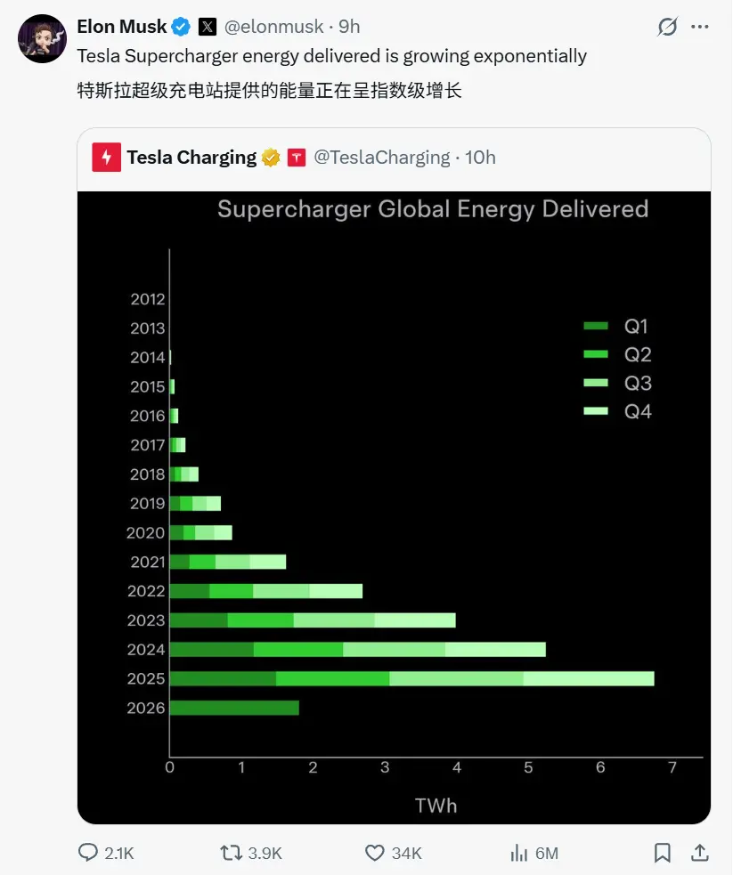 ∞ 特斯拉2026一季度财报:交付量超35.8万辆 同比增长6.5%