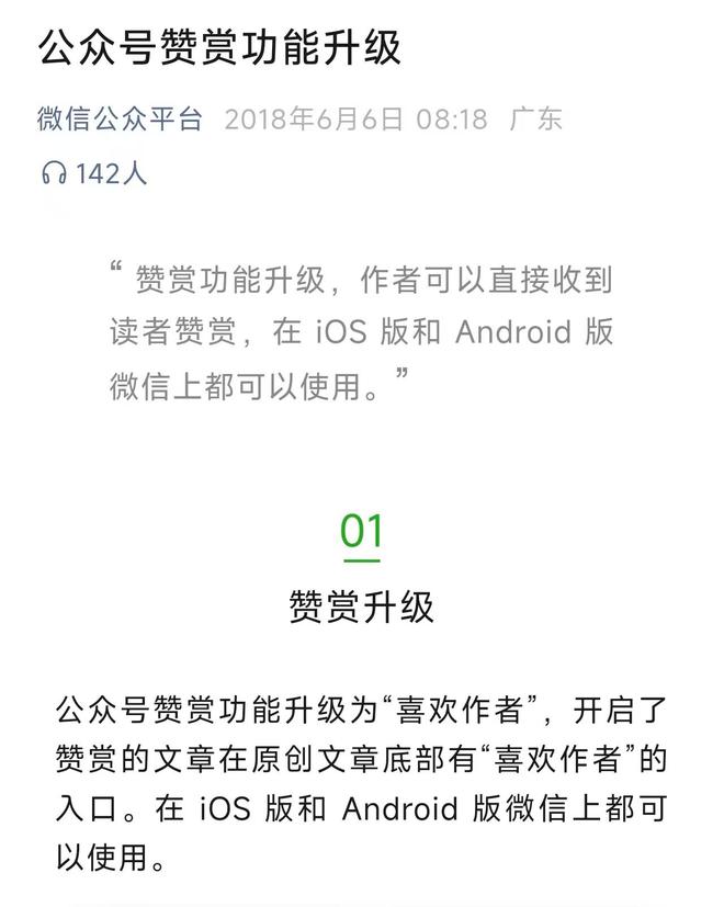 苹果这项新规,最终酿成了 2017 年 4 月微信官方发布的一则《遗憾通知》:“即日起,iOS 版微信公众平台赞赏功能将被关闭,Android等其他版本微信赞赏功能不受影响。经过与苹果方面长期沟通协调,最终,我们选择对 iOS 版微信赞赏功能进行了调整。”