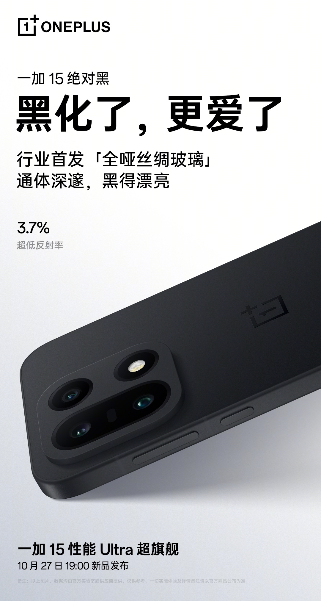 ∞ 一加15“绝对黑”配色公布:纯粹、极致 史上最黑
