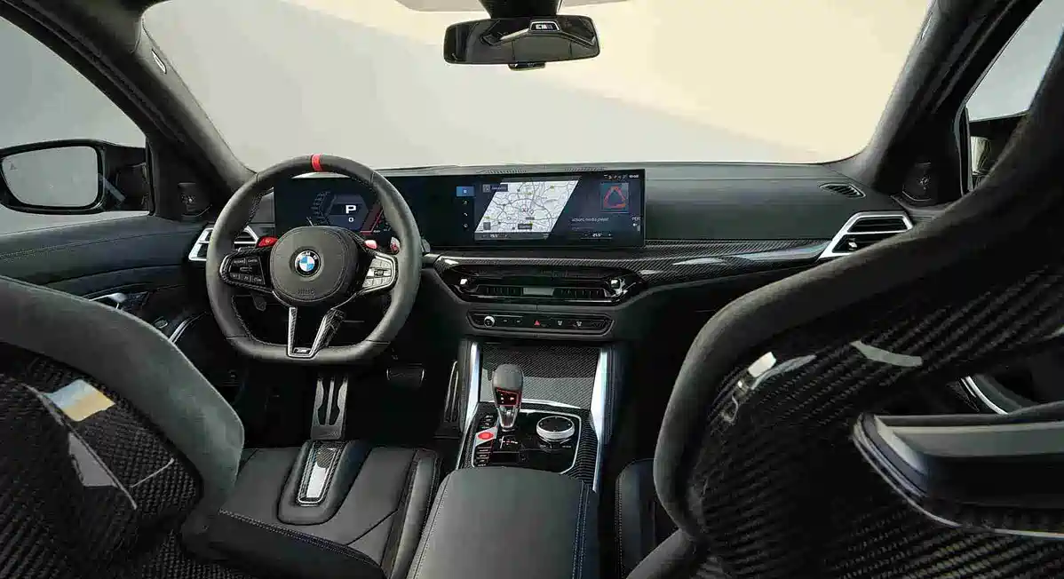 新款宝马M3旅行版内饰方面,采用的是全新的平底M运动多功能方向盘,在12点位配备红色回正标设计;空调出风口颜色调整为了黑色,与中控台整体保持同色。其它基本和现款保持一致,依然配备的是12.3英寸的全液晶仪表盘和14.9英寸的中控大屏,搭载是BMW Operating System 8.5车机系统。