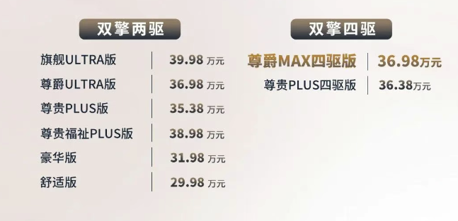 前电机最大功率为134kW,峰值扭矩为270牛·米,系统综合功率为181千瓦,传动系统匹配E-CVT变速箱,四驱版额外增加了一台40kW的后电机。