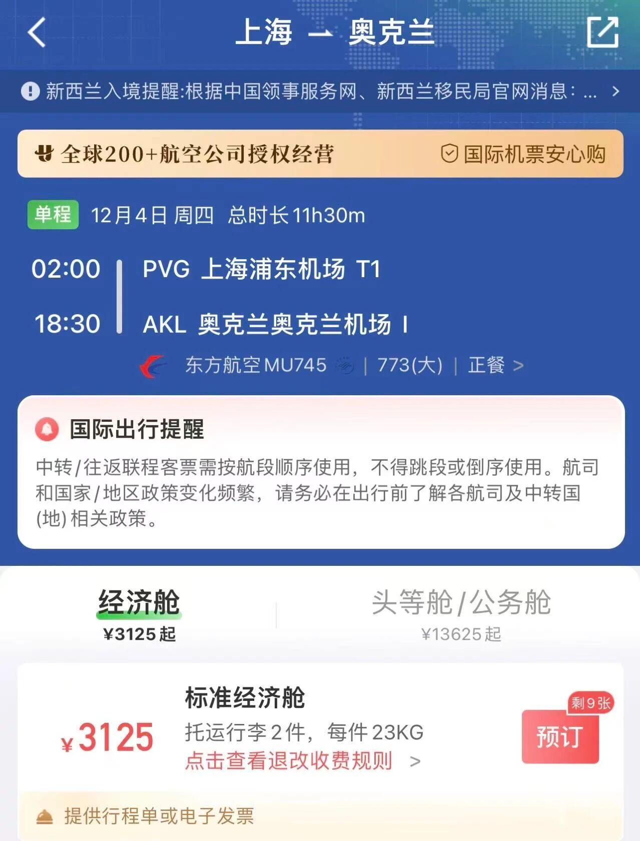 不过,这条航线并不是直飞,而是在新西兰奥克兰经停,18点30分到达。