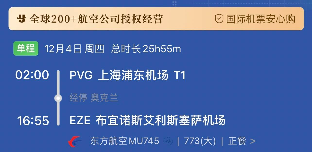 ∞ 东航将开通上海—奥克兰—布宜诺斯艾利斯航线 全长2万公里 飞26小时