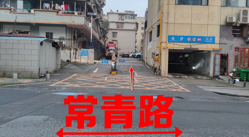 第1步、店铺浏家冲北路北面小车道闸入口(南往北时黄线处可左转进入),一直左转就到本栋楼的前门