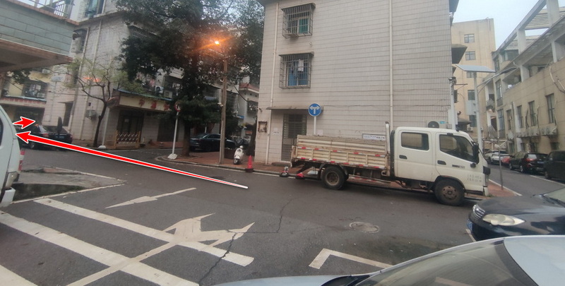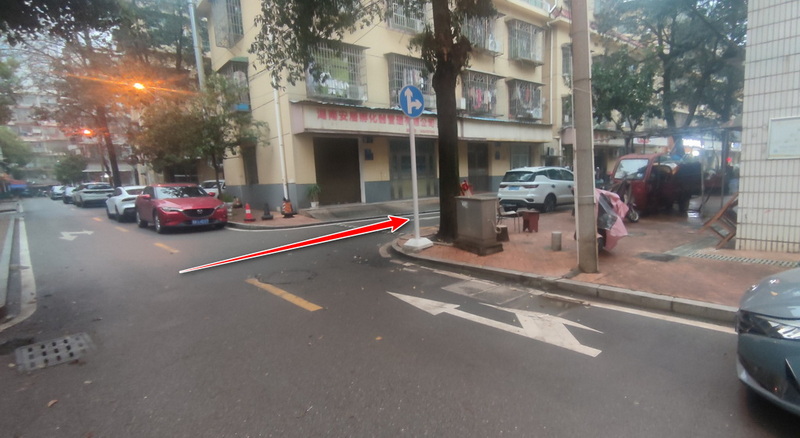 第2步、进入小区直行,看到小区内的十字路口左转: