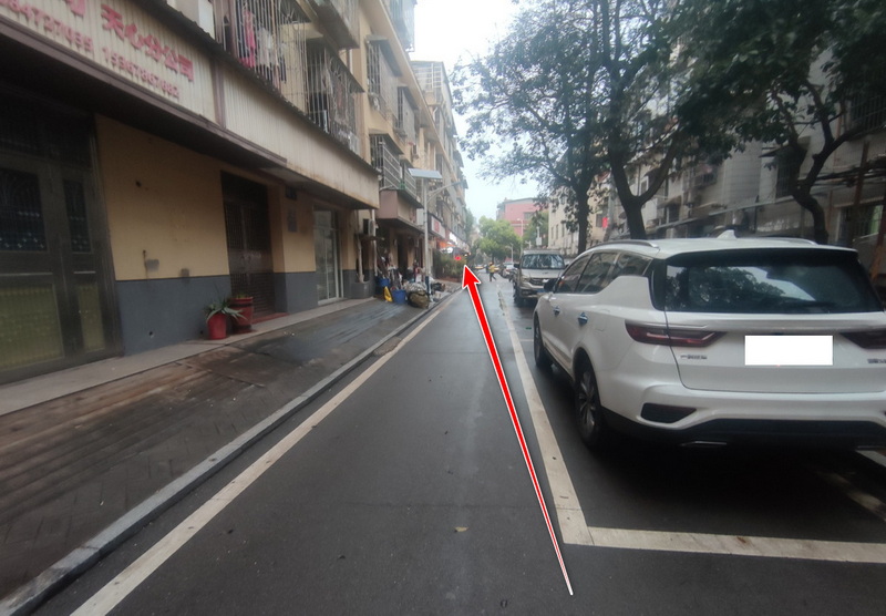第3步、进入小区直行,看到墙后左转,并在第二个巷子处右转;